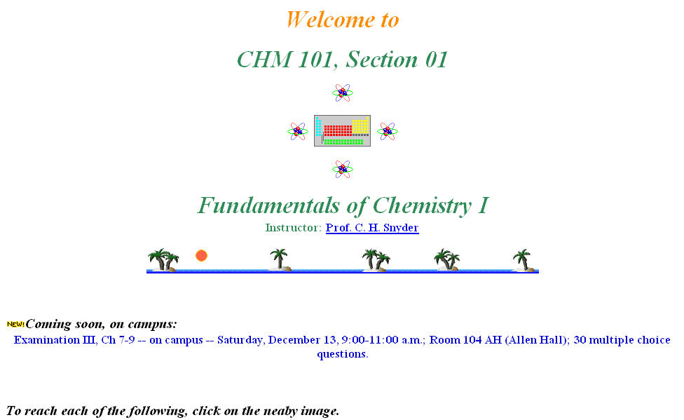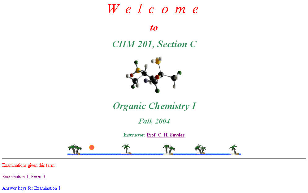 My most recent web page, created just before retirement, was for a course in organic chemistry, CHM 201.