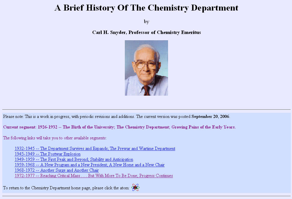 before I left the department I began work on a web-based history of the UM chemistry department. Although work has continued since I retired, there's